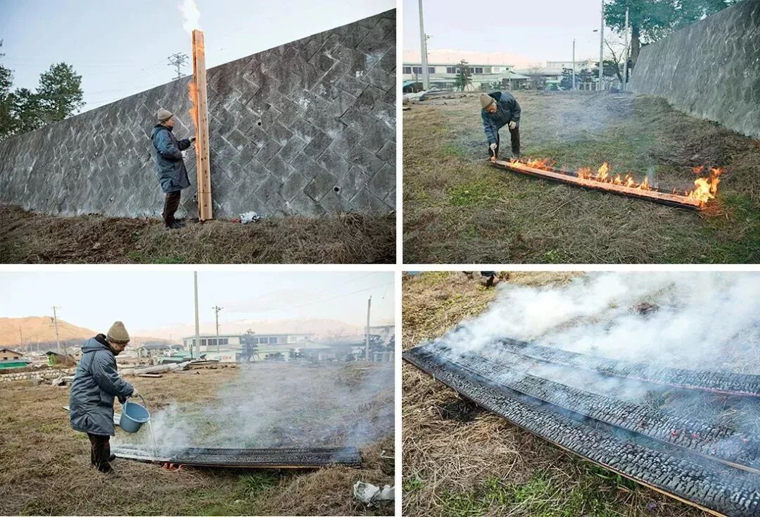 这种炭烧木材的工艺需要手工完成