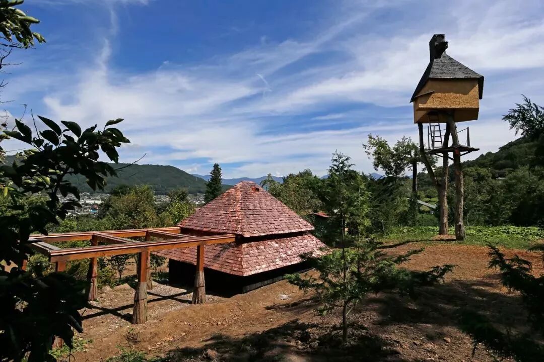 藤森照信还在樱花树林里设计了一个茶室